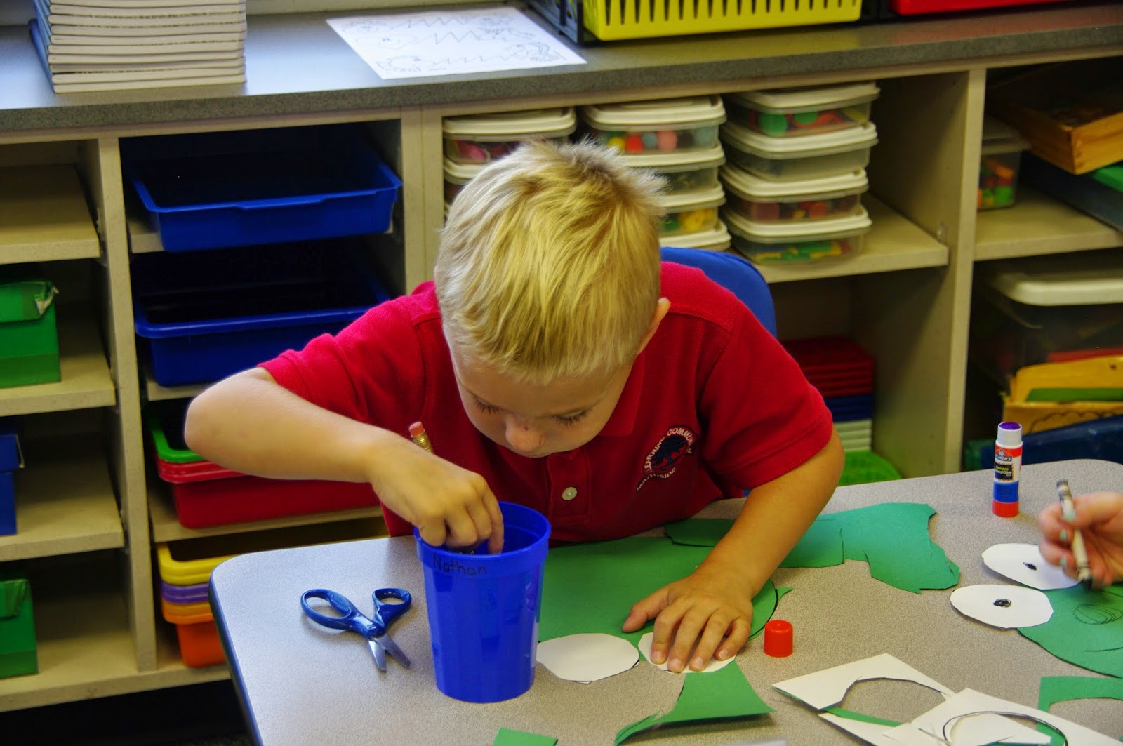 We have also worked on the numbers 1-10 while we made our BIG numbers at the beginning of the year. This gave the students even more cutting practice as well as practice using regular glue. They learned the class motto for white glue; Dot, Dot, Not a Lot! We practiced this every time we used the glue. But more importantly, making the big numbers gave the children practice with identifying numerals as well as counting and making sets.